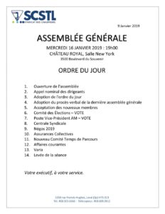 16 Janvier 2019 : Assemblée Générale Régulière