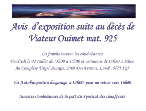 2021-06-29 AVIS DÉCÈS VIATEUR OUIMET 29 juin 2021 Désolé, vous devez être connecté pour accéder à ce contenu. - 0