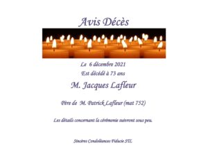 2021-12-06 AVIS DE DÉCÈS DU PÈRE DE PATRICK LAFLEUR 6 Décembre 2021 Désolé, vous devez être connecté pour accéder à ce contenu. - 0