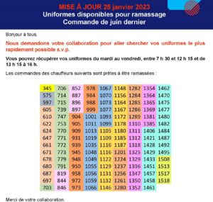 2023-01-25 Rappel commandes d'uniformes disponible pour ramassage 1219 25 janvier 2023 Désolé, vous devez être connecté pour accéder à ce contenu. - 0