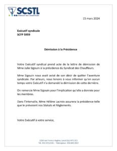 2024-03-15 Avis Exécutif syndical – Démission à la Présidence 15 mars 2024 Désolé, vous devez être connecté pour accéder à ce contenu. - 0