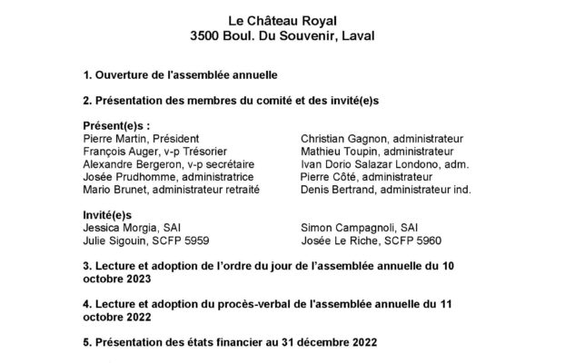 0-RRCASTLSyndicat / ApplicationTVVie SyndicaleAssemblée annuelle régime de retraite 10 octobre 2023 ordre du jour Vous devez être connecté pour accéder à cette page. 3 octobre 2023Lire la suite