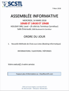 Le Portail du Syndicat des Chauffeurs de la STL se veut un moyen de communication rapide et efficace pour tous les chauffeurs d’autobus de la STL. N’hésitez pas à soumettre vos idées d’améliorations ou de nouvelles fonctionnalités dans la Boîte à Suggestion. Plus d’informations seront ajoutés au fil du temps, visitez le portail souvent et assurez vous d’être inscrit aux notifications!