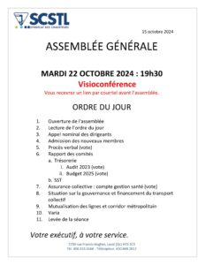 Ordre du jour : Assemblée générale du 22 octobre 2024 15 octobre 2024 Désolé, vous devez être connecté pour accéder à ce contenu. - 0