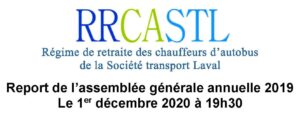 RÉGIME DE RETRAITE: REPORT DE L'ASSEMBLÉE ANNUELLE 1ER DÉCEMBRE 2020 7 octobre 2020 Désolé, vous devez être connecté pour accéder à ce contenu. - 0