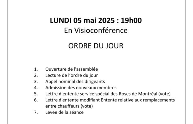 Rappel: Lundi 5 mai Assemblée Extraordinaire – Vidéoconférence – Votes