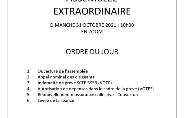 2021-10-29 ANNONCE D'ASSEMBLÉE EXTRAORDINAIRE DIMANCHE 31 OCTOBRE Pierre Martin Syndicat / ApplicationTVVie Syndicale 29 octobre 2021 Vous devez être connecté pour accéder à cette page. - 0