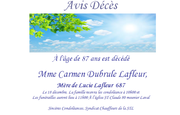 2021-12-07 AVIS DE DÉCÈS MÈRE DE LUCIE LAFLEUR