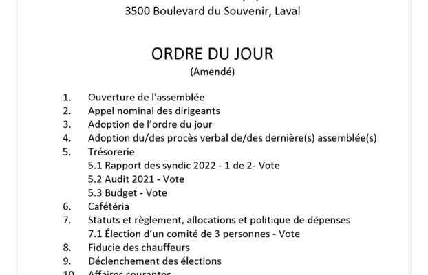 2022-09-06 Rappel: Demain 7 SEPTEMBRE 2022: ASSEMBLÉE GÉNÉRALE RÉGULIÈRE Pierre Martin Syndicat / ApplicationTVVie Syndicale 6 septembre 2022 Vous devez être connecté pour accéder à cette page. - 0