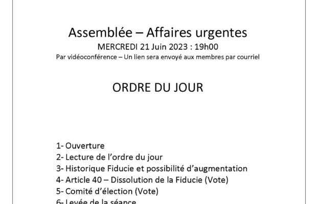 2023-06-14 Assemblée urgente – Fiducie des chauffeurs Pierre Martin FiducieSyndicat / ApplicationTVVie Syndicale 14 juin 2023 Vous devez être connecté pour accéder à cette page. - 0