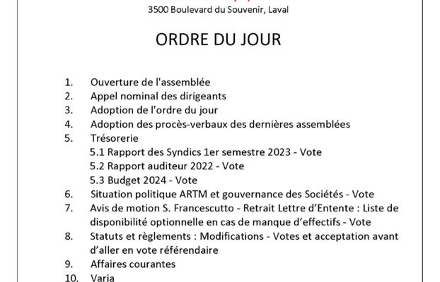 2023-09-13 Rappel: Demain 14 SEPTEMBRE 2023: ASSEMBLÉE GÉNÉRALE RÉGULIÈRE Pierre Martin Syndicat / ApplicationTVVie Syndicale 13 septembre 2023 Vous devez être connecté pour accéder à cette page. - 0