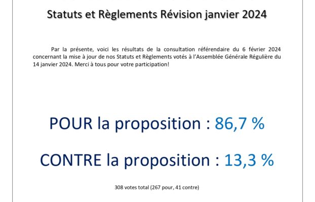 Consultation Référendaire : Révision Statuts & Règlements : Adopté!