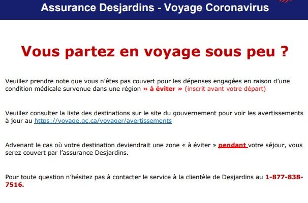 COVID-2019 AVIS ASSURANCE VOYAGE
