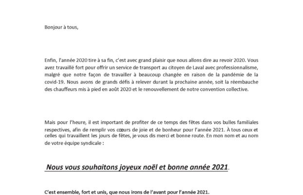 JOYEUX NOEL ET BONNE ANNÉE 2021!