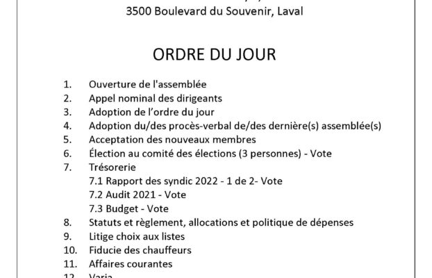 RAPPEL: Demain 11 Janvier 2023: Assemblée générale régulière Pierre Martin Syndicat / ApplicationTVVie Syndicale 10 janvier 2023 Vous devez être connecté pour accéder à cette page. - 0