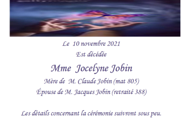 2021-11-11 DÉCÈS MÈRE DE CLAUDE JOBIN Pierre Martin FiducieTV 11 novembre 2021 Vous devez être connecté pour accéder à cette page. - 0